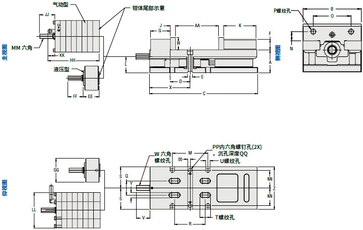 反向型(3610)和反向短體型(3630)標準型、液壓型和氣動型此型鉗除了具有標準多功能平口鉗的特點外,更具獨特 性。Y軸是正向,易于編程。定鉗在手柄一側,操作者在裝卸 工件時更安全、簡捷、迅速。功能和特點: